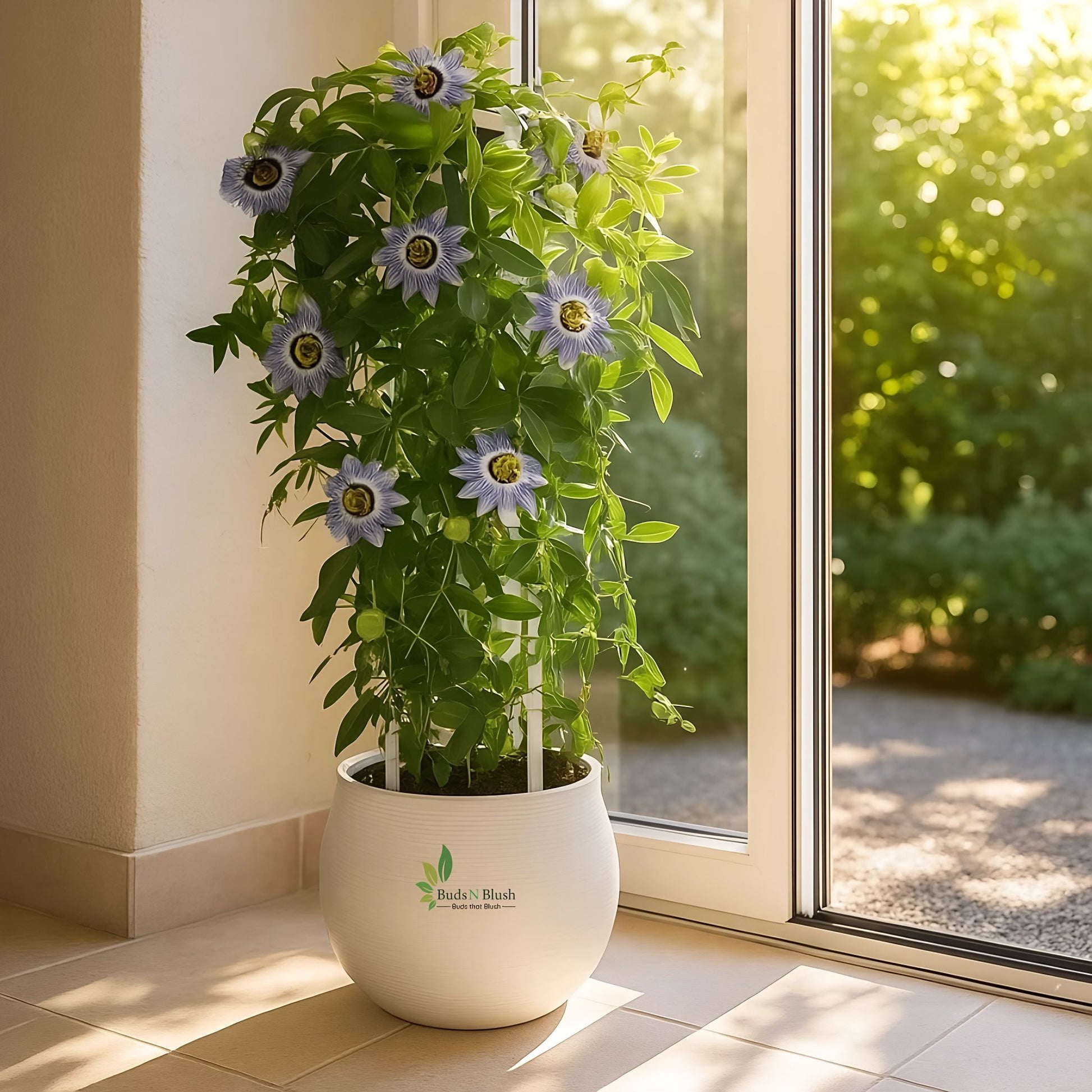 The Krishna Kamal, also known as the Passion Flower, is an exotic climber revered for its striking, intricate blooms that seem like works of art sculpted by nature. Deeply rooted in Indian culture and mythology, this captivating flower is associated with Lord Krishna, with each part of its blossom symbolizing elements of his divine life. Native to tropical and subtropical regions of South America, it flourishes in warm, sunny climates and has adapted beautifully to Indian gardens. The blooms, with their radiant purple, white, and blue filaments, exude a divine aura, making them both ornamental treasures and symbols of spiritual grace.
